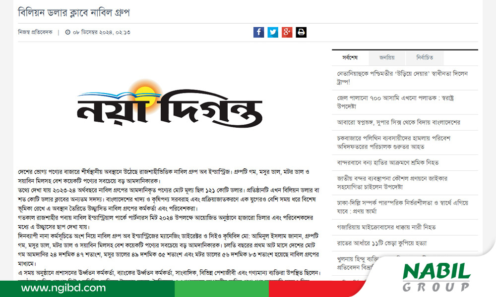Nabil Group's Significant Contribution to Bangladesh's Food and Agriculture Sector For over a decade, Nabil..
